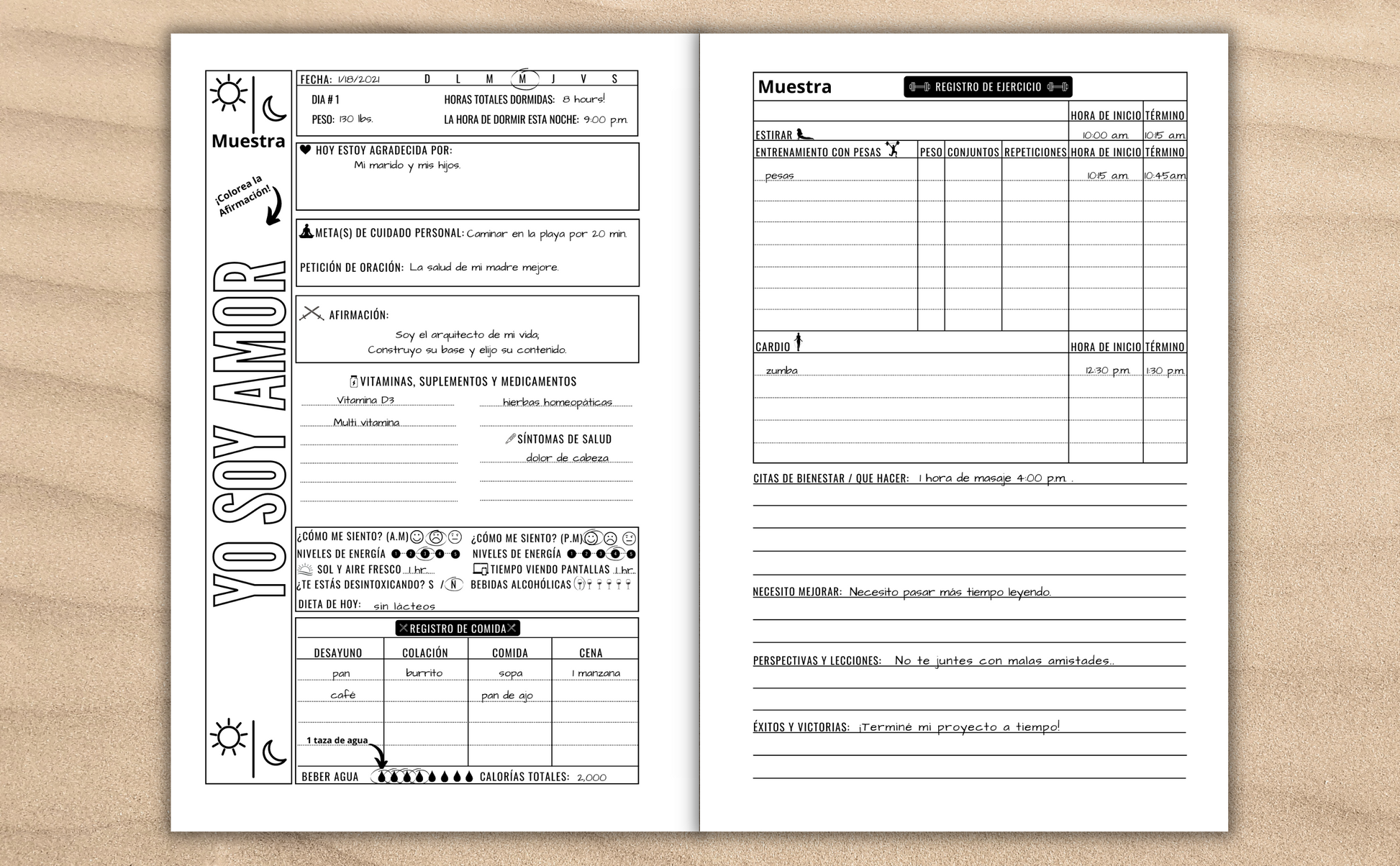 Este diario de bienestar lo ayudará a realizar un seguimiento de su vida diaria y lo ayudará a crear equilibrio y mantener hábitos saludables para que pueda tener el mejor día todos los días.